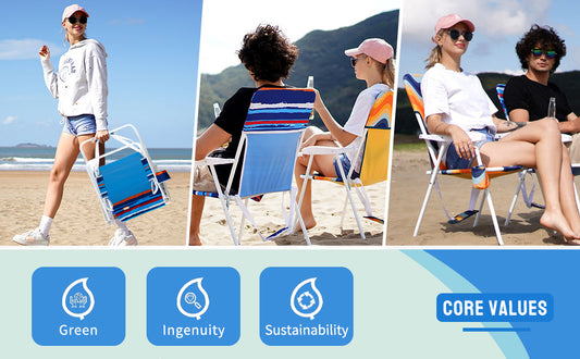 Folding Beach Chair Lightweight, Portable Sand Chair For Adults Heavy Duty 300 LBS With Cup Holders, Foldable High Camping Lawn Chairs For CampOutdoorPicnicConcertSports