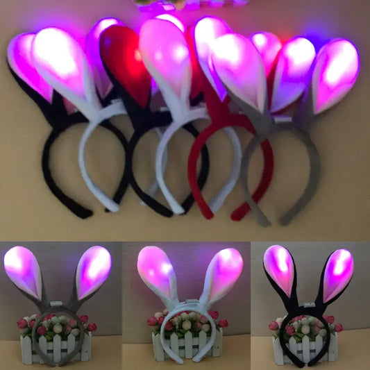 Girls Easter Bunny Ears Headband LED Glowing Rabbit Ears Headband Cosplay Zootopia Judy Hair Hoop Cute Headwear Hair Accessories