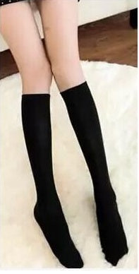 Black Medium Thigh High Socks Calf Socks Female Knee Length Socks
