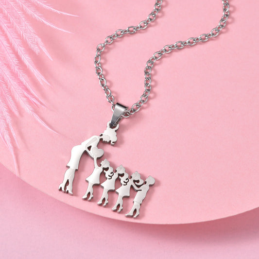 Fashion Jewelry Stainless Steel Heart-shaped Mom Necklace And Earring Suit