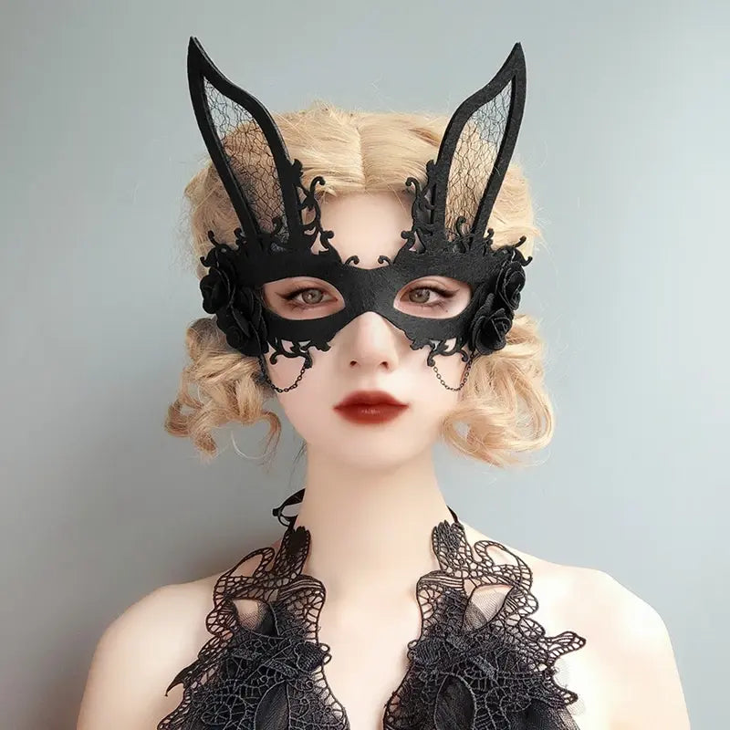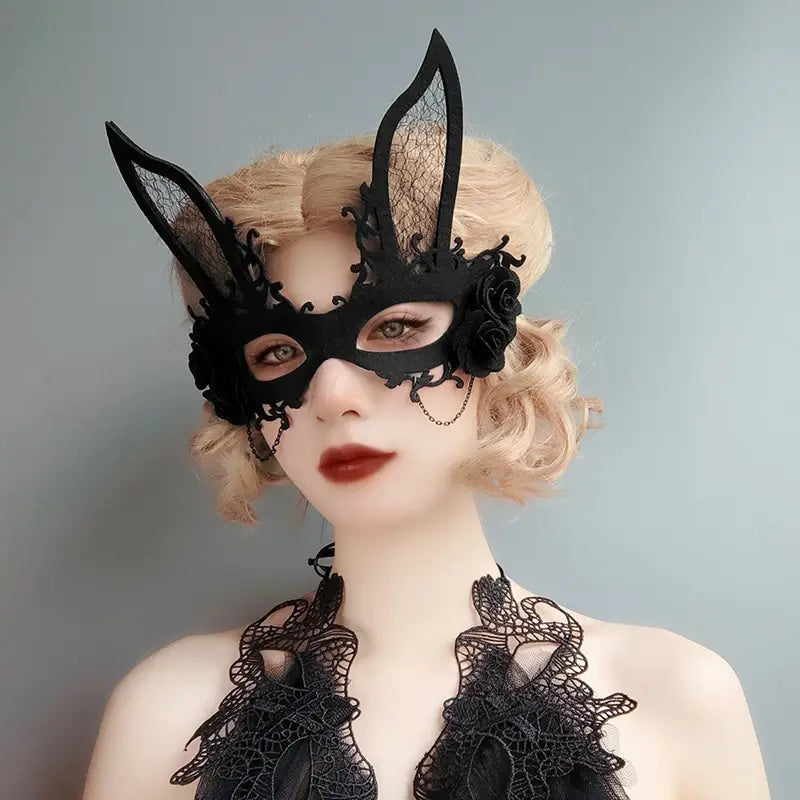 Decorative flowers, long black rabbit ears, very cute, the masquerade facewear makes you full of mystery, romance, nobility and elegance, and will bring you a different temptation.
