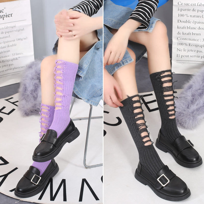 Beggar Ripped For Women Pile Style Thigh High Socks