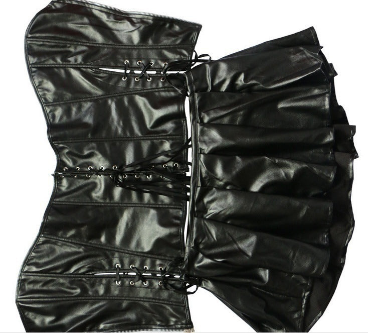 Black Sexy leather imitation leather and empty zipper body suit