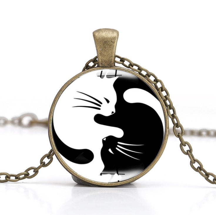 [product name] Tai Chi Yin Yang Cat Time Gemstone Necklace