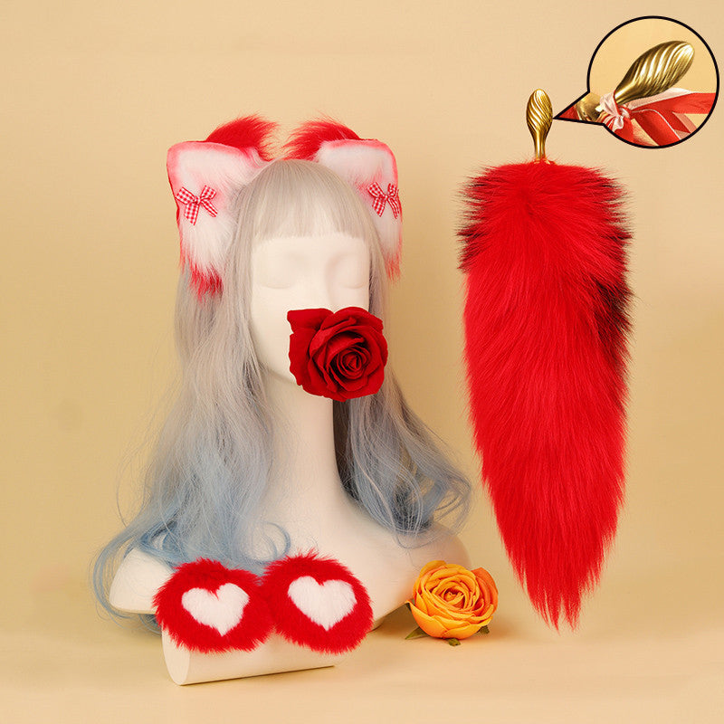 Color classification: enchanting fire foxtail + fox ear headband + sexy nipple stickers (rose anal plug) enchanting fire foxtail + fox ear headband + sexy nipple stickers (threaded anal plug)