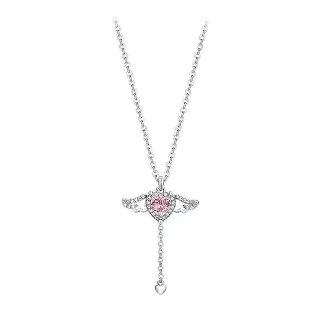 Made from premium sterling silver, the Heart Wings Necklace is not just an accessory; it's a symbol of refined taste and exquisite craftsmanship. The delicate pink rhinestones incorporated into the design add a touch of sparkle and shimmer, ensuring you stand out in any crowd.