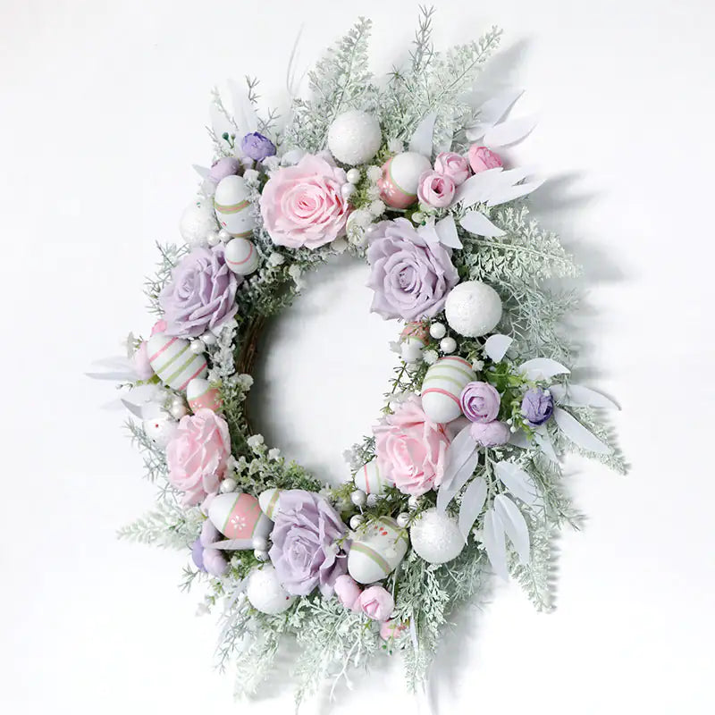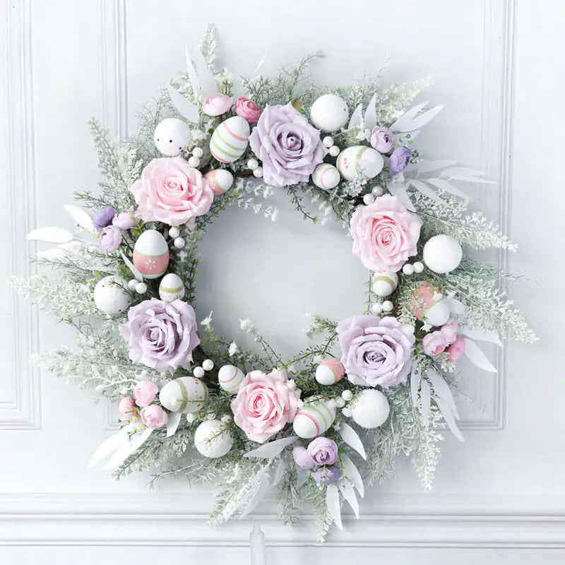 Welcome the season with a touch of festive flair using our charming Easter wreath door decoration. Crafted with vibrant colors and whimsical accents, this wreath is sure to spread joy and cheer to all who pass by your door.