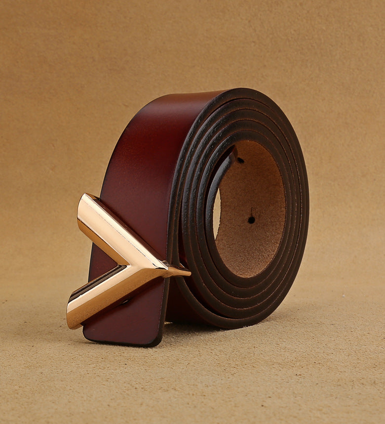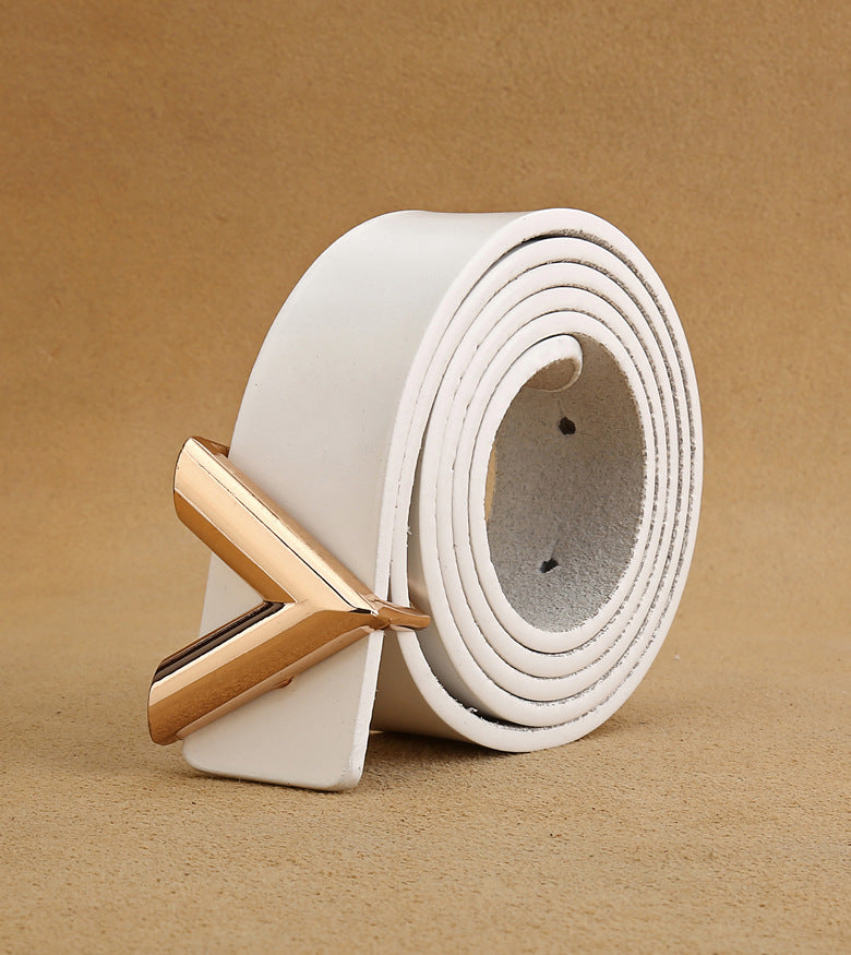 Ladies Luxury Leather Alloy V-Shaped Buckle High Quality Fashion Women's Belt