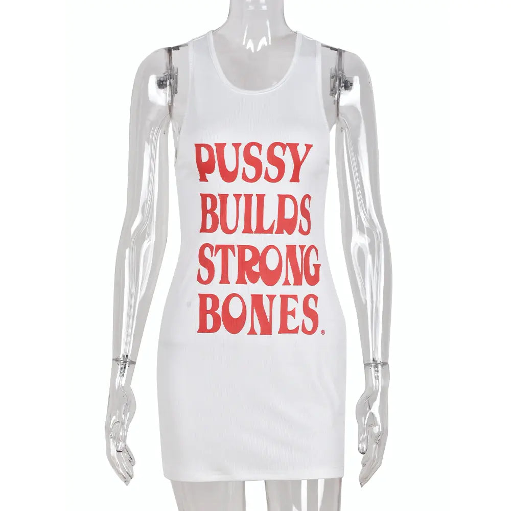 Letter Print White Rib Tank Dresses