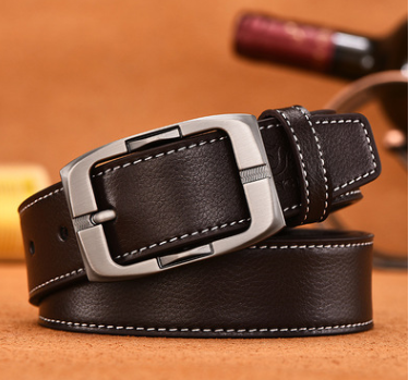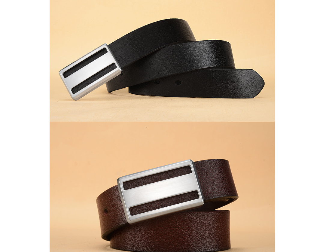 Men's Smooth Buckle Belt Fashion Business Belt Belt Two Layers Leather Belt