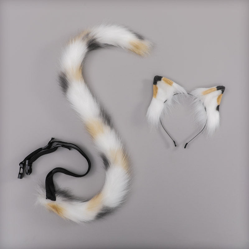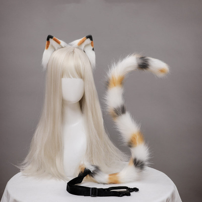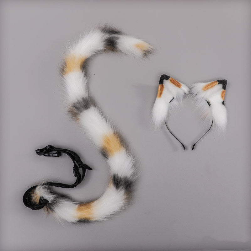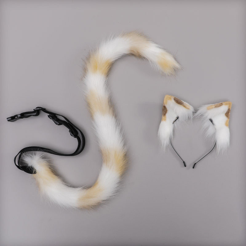 Color: Sanhua cat headband-black orange white, Sanhua cat headband-black camel white, Sanhua cat headband-brown camel white, Sanhua cat tail-black orange white, Sanhua cat tail-black camel white, Sanhua Cat Tail-Brown Camel White, Sanhua Cat Set-Black Orange White, Sanhua Cat Set-Black Camel White, Sanhua Cat Set-Brown Camel White