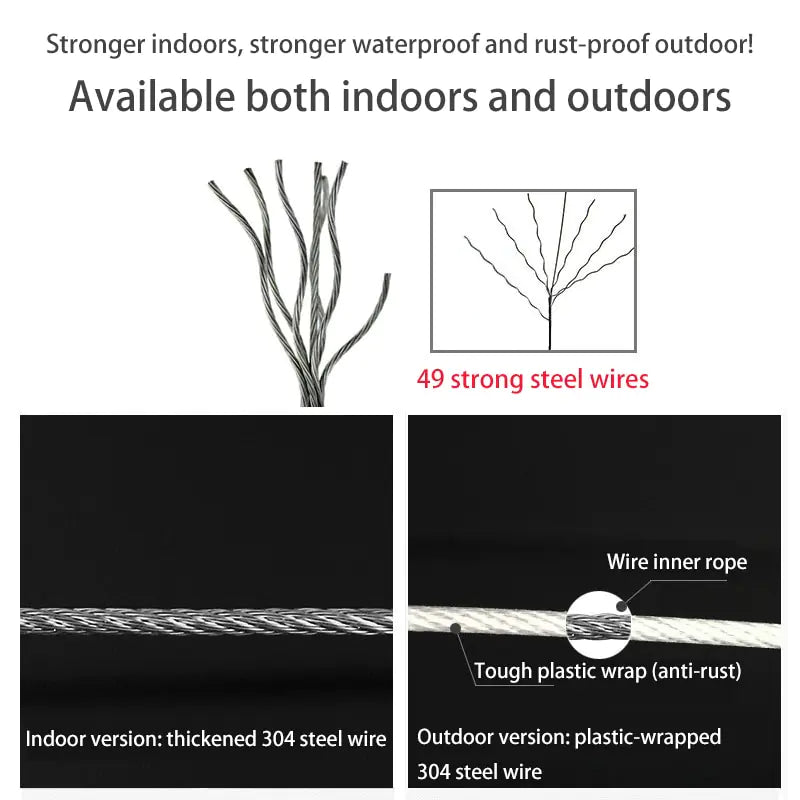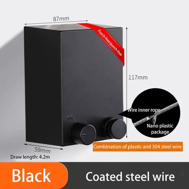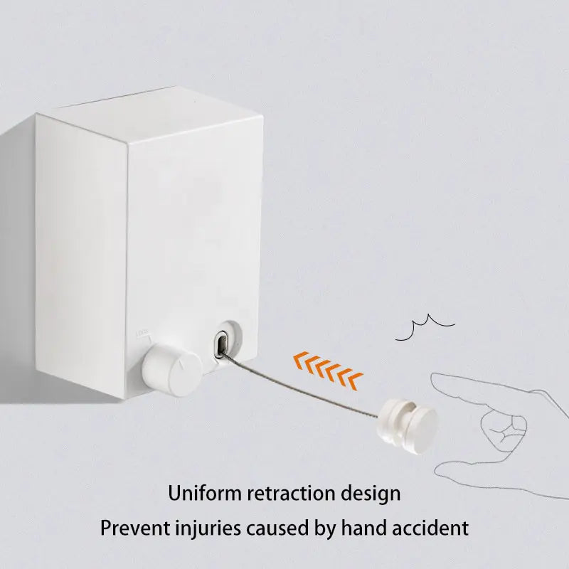 2. **Freely Retractable:** The wire rope is resistant to abrasion, rust, and wear. Easily pull out the wire rope for drying, and remember to secure it in place with the convenient switch to prevent automatic retraction.