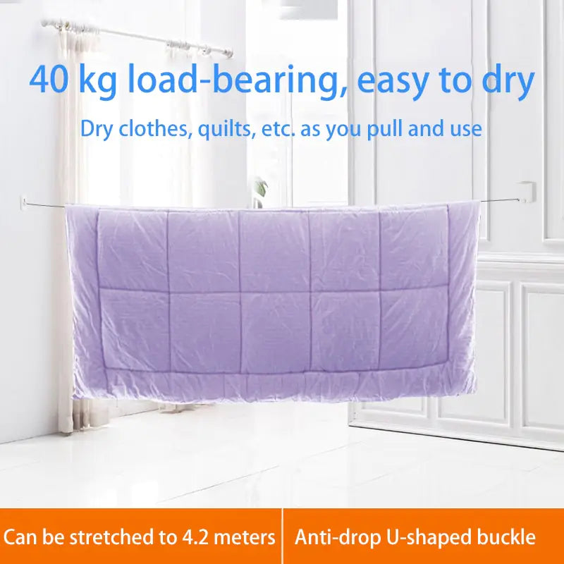 Introducing our Wall Hanging Clothes Drying solution – the Punch-Free Retractable Clothesline Hotel Wall Hanging Clothes Drying Rack. This indoor steel wire invisible organizer is not only practical but also adds a touch of elegance to your space. Say goodbye to bulky drying racks and hello to a sleek, efficient laundry hanger.